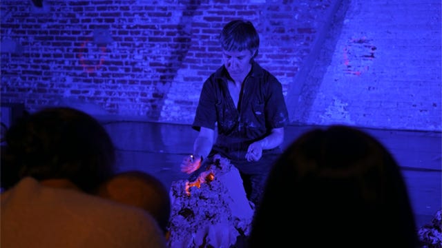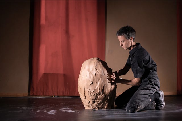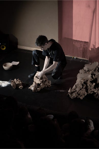 Une masse d'argile qui se métamorphose aux sons vaporeux d'une guitare électrique. Une expérience visuelle et sonore contemplative.